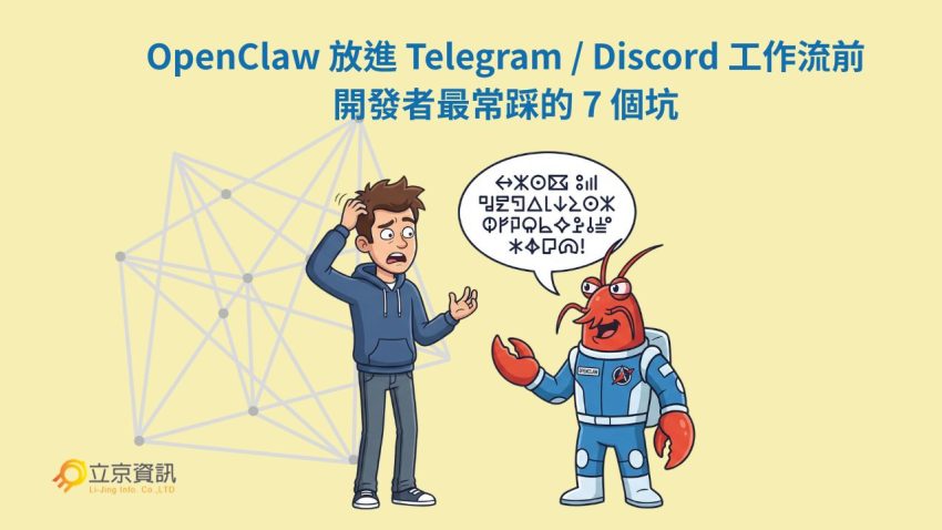 整理開發者把 OpenClaw 接進 Telegram、Discord 與自動化流程時最常遇到的 7 個問題,包含權限、上下文、提醒、背景任務與除錯實務。